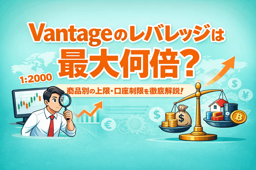 Vantageでは「最大2000倍」という数字が目立ちますが、これはすべての商品に共通して適用されるわけではありません。実際には、商品ごとに最大レバレッジが細かく設定されており、その上限は大きく異なります。
