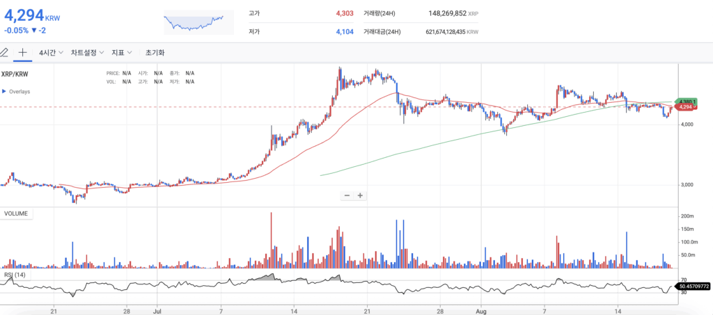 🇰🇷【XRP/KRW・4H】韓国プレミアム発生状況