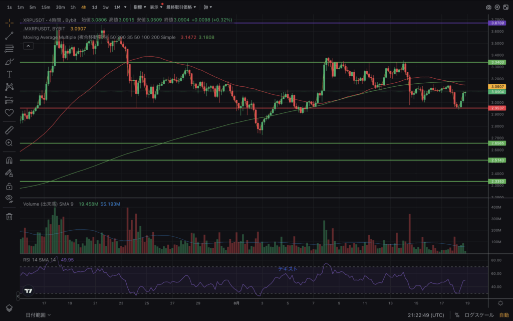 - 50EMA:3.09ドル付近(現在レジスタンスとして機能)